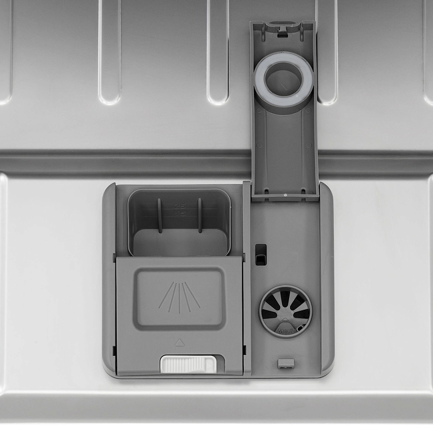 i Возможно использование специальных таблеток 3в1, включающих моющее средство, ополаскиватель и соль для смягчения воды. Это быстро и удобно.