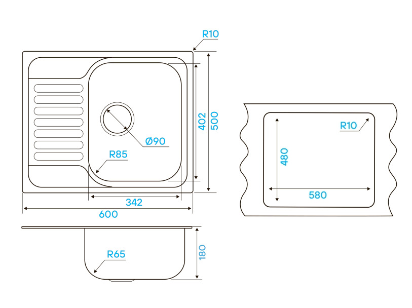i Наличие и расположение крыла кухонной мойки — слева, справа или с обеих сторон. Крыло оборачиваемой мойки можно расположить с любой стороны.