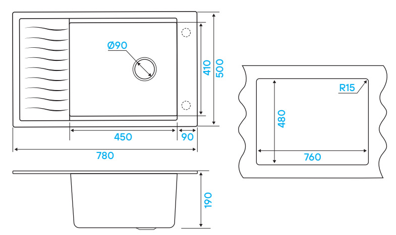 i Наличие и расположение крыла кухонной мойки — слева, справа или с обеих сторон. Крыло оборачиваемой мойки можно расположить с любой стороны.
