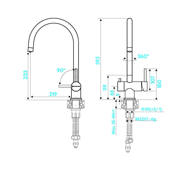 KUCHENSTERN DRIM-F, смеситель, нержавеющая сталь