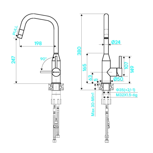 KUCHENSTERN FILA-S, смеситель, нержавеющая сталь