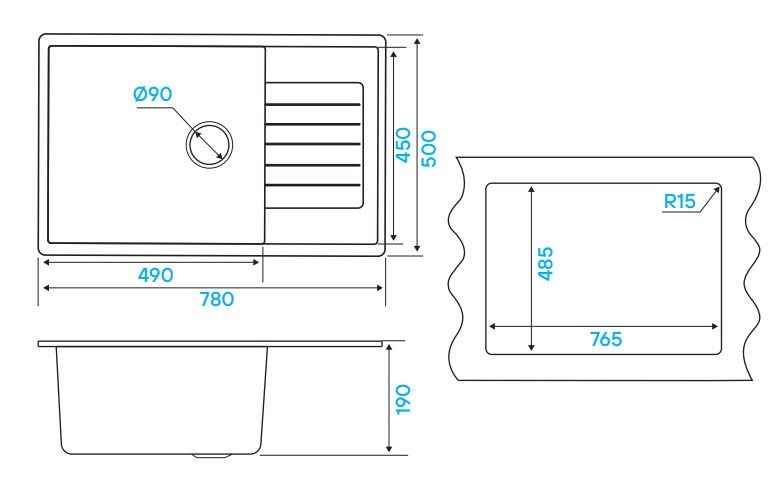 i Наличие и расположение крыла кухонной мойки — слева, справа или с обеих сторон. Крыло оборачиваемой мойки можно расположить с любой стороны.