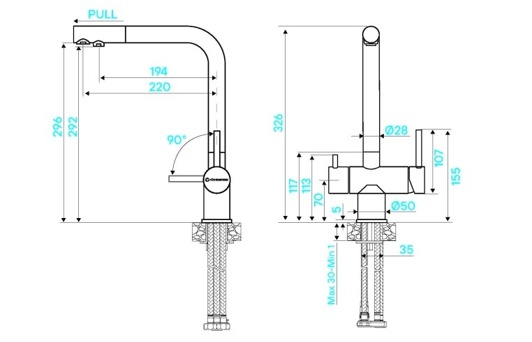 KUCHENSTERN FOKUS-FS, смеситель, нержавеющая сталь, вороненая сталь