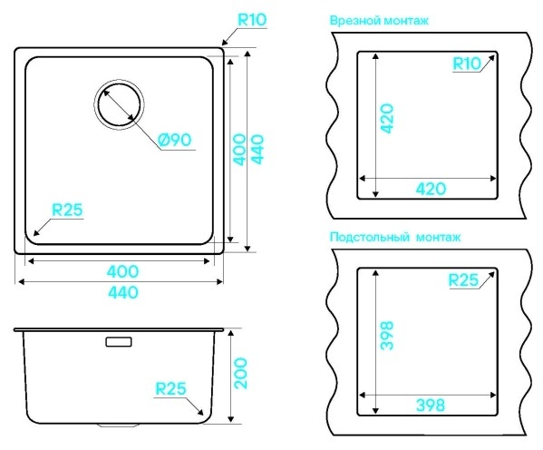 врезная/под столешницу |