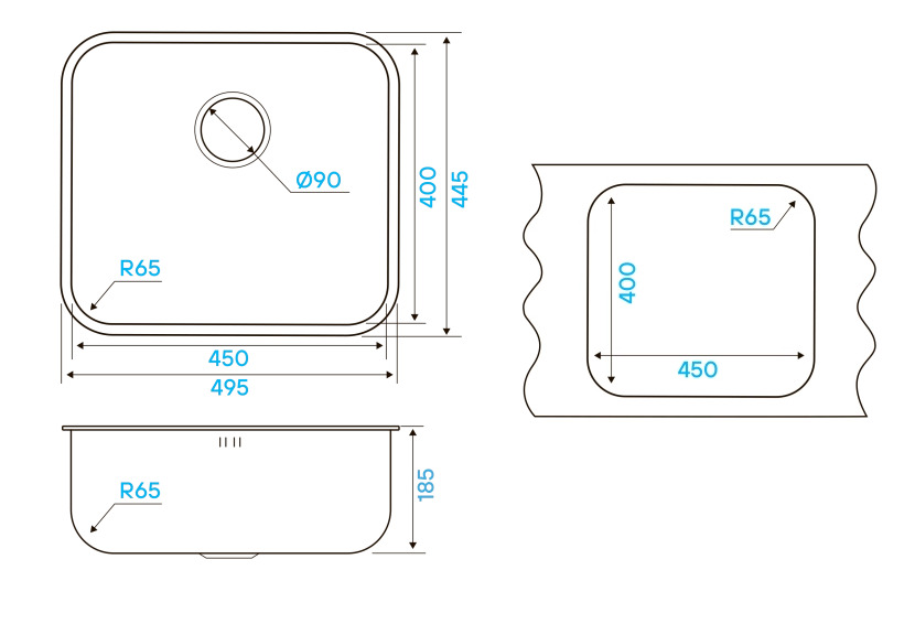 i Расстояние от дна до верхней кромки чаши мойки. Оптимальная глубина — 15-18 см. Чем глубже мойка, тем меньше брызг попадет наружу.
