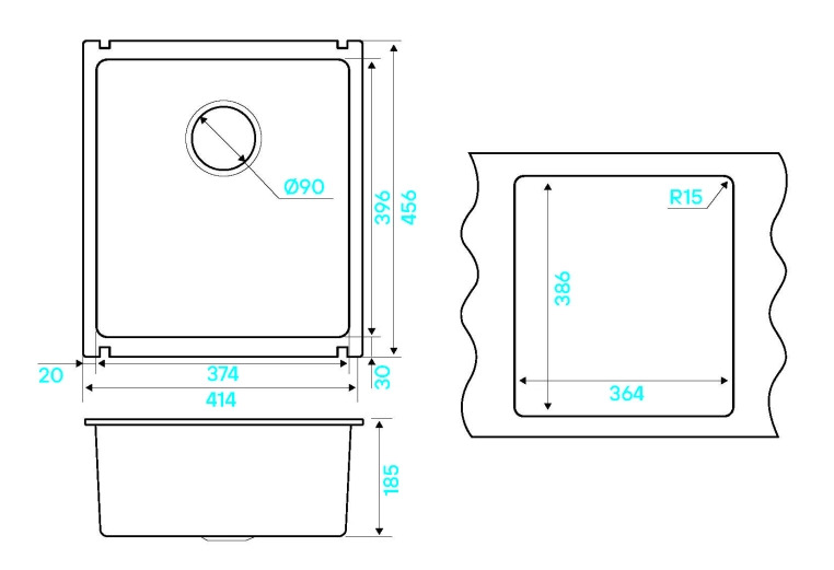 i Расстояние от дна до верхней кромки чаши мойки. Оптимальная глубина — 15-18 см. Чем глубже мойка, тем меньше брызг попадет наружу.