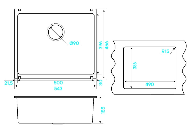 i Расстояние от дна до верхней кромки чаши мойки. Оптимальная глубина — 15-18 см. Чем глубже мойка, тем меньше брызг попадет наружу.