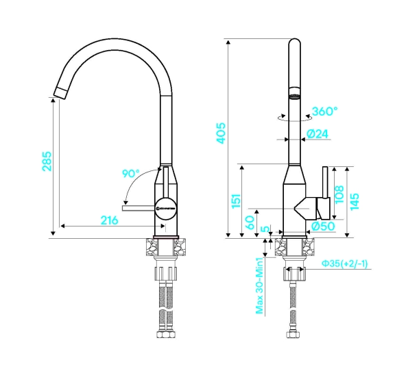 KUCHENSTERN TIDA, смеситель, нержавеющая сталь