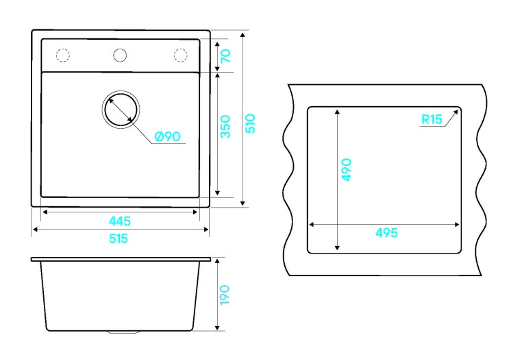 i Расстояние от дна до верхней кромки чаши мойки. Оптимальная глубина — 15-18 см. Чем глубже мойка, тем меньше брызг попадет наружу.