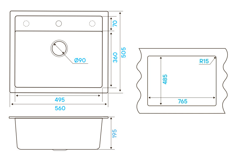 i Расстояние от дна до верхней кромки чаши мойки. Оптимальная глубина — 15-18 см. Чем глубже мойка, тем меньше брызг попадет наружу.