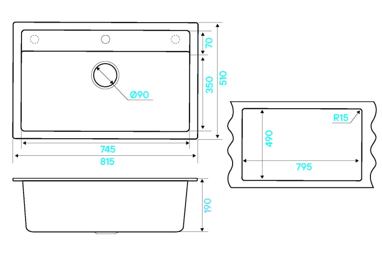 i Расстояние от дна до верхней кромки чаши мойки. Оптимальная глубина — 15-18 см. Чем глубже мойка, тем меньше брызг попадет наружу.