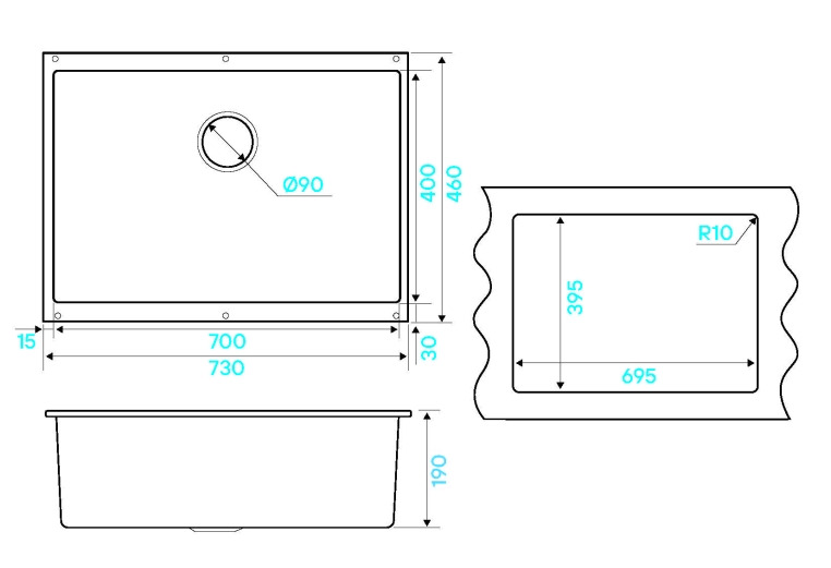 i Расстояние от дна до верхней кромки чаши мойки. Оптимальная глубина — 15-18 см. Чем глубже мойка, тем меньше брызг попадет наружу.