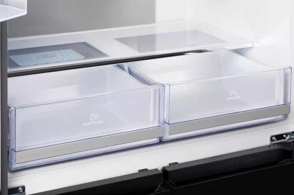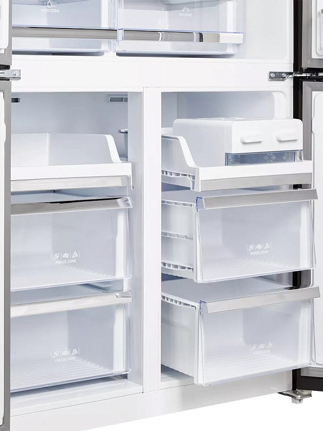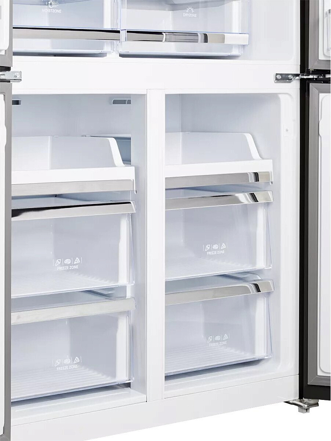 i В зоне свежести температура держится на уровне 0°С, так продукты дольше остаются свежими. Подходит для свежего мяса, рыбы, фруктов, овощей.