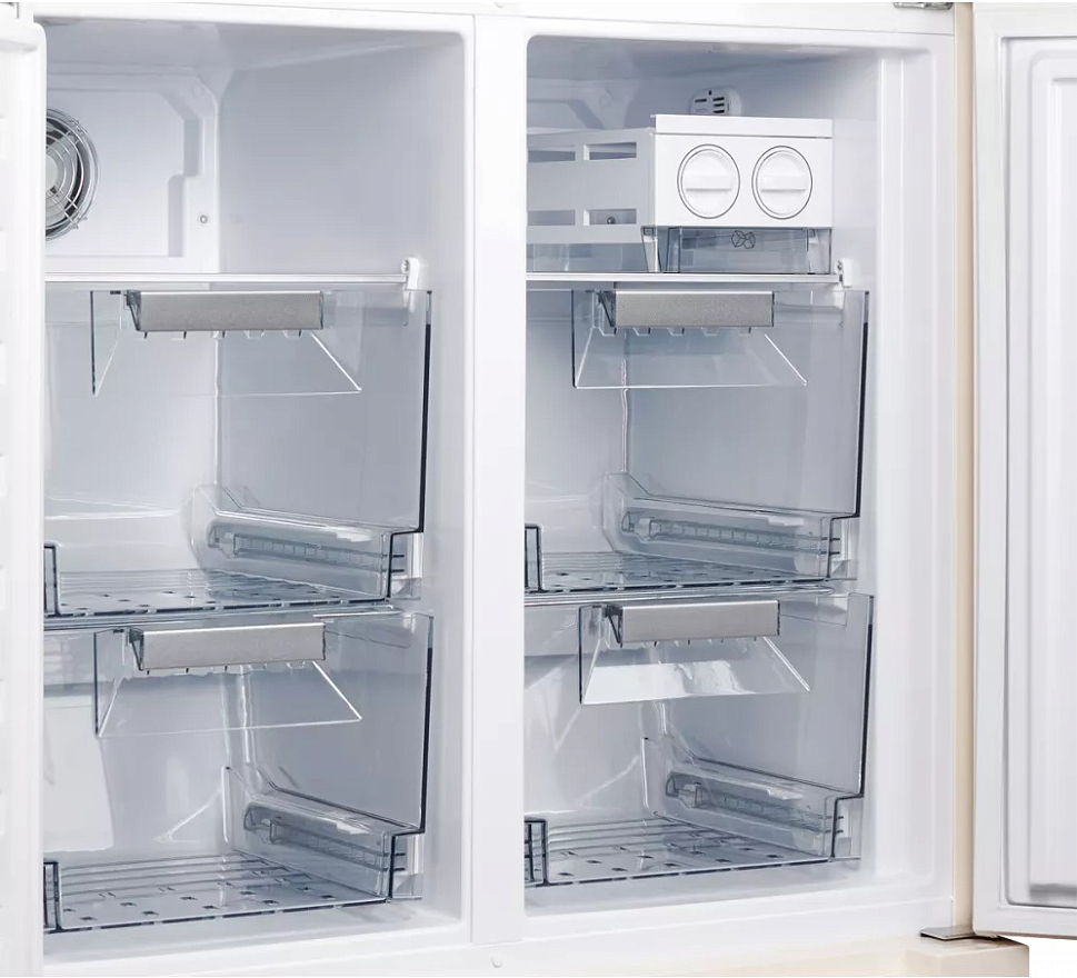 i Морозильная камера может быть расположена сверху, снизу от основной камеры, Side-by-Side. Также она может отсутствовать вовсе.