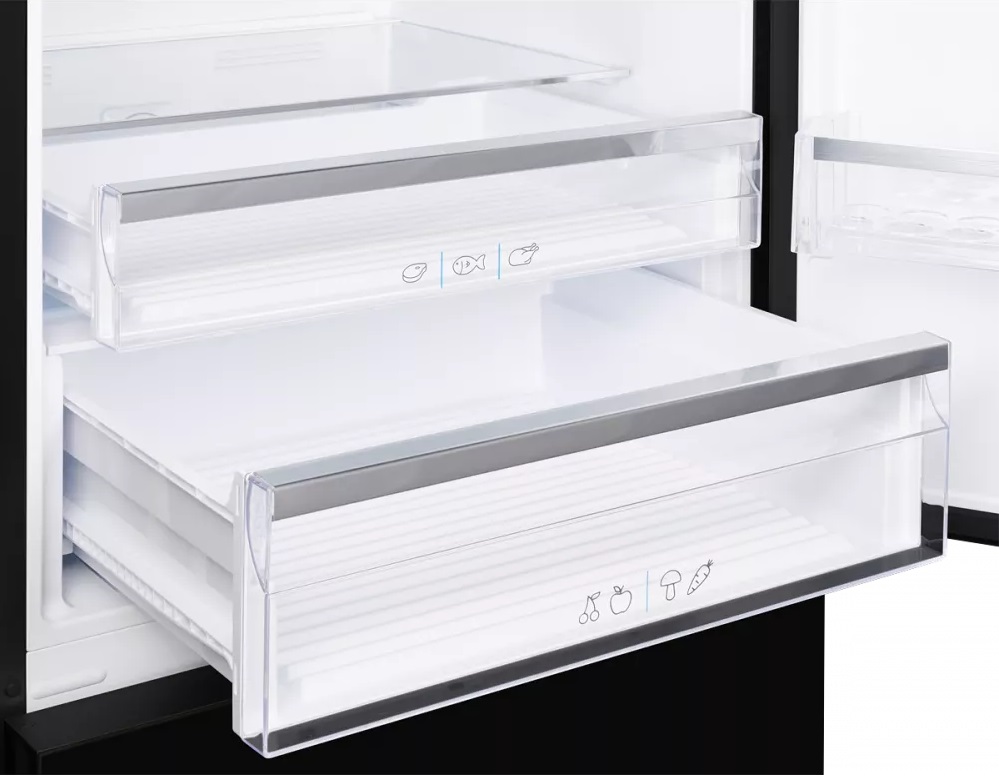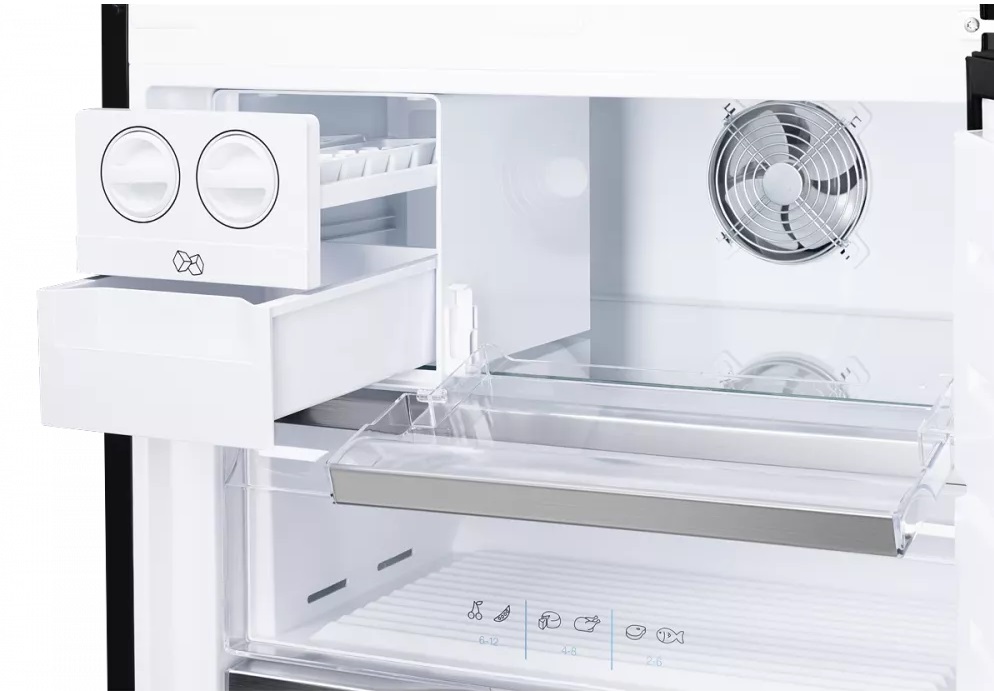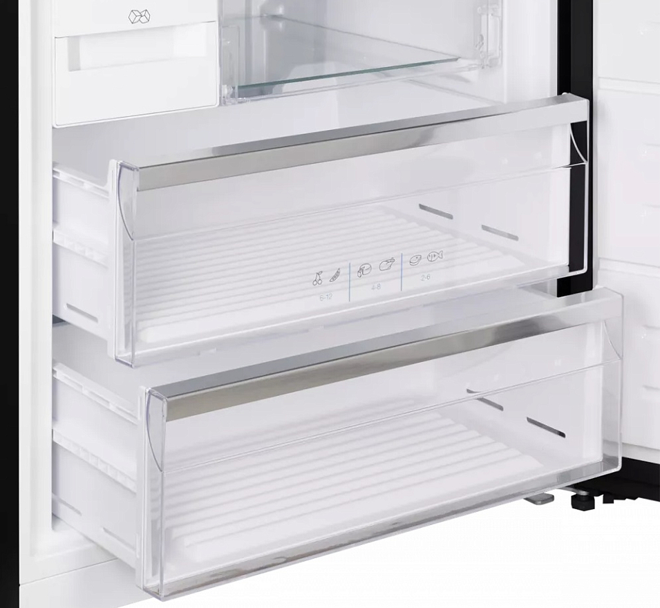 i В зоне свежести температура держится на уровне 0°С, так продукты дольше остаются свежими. Подходит для свежего мяса, рыбы, фруктов, овощей.