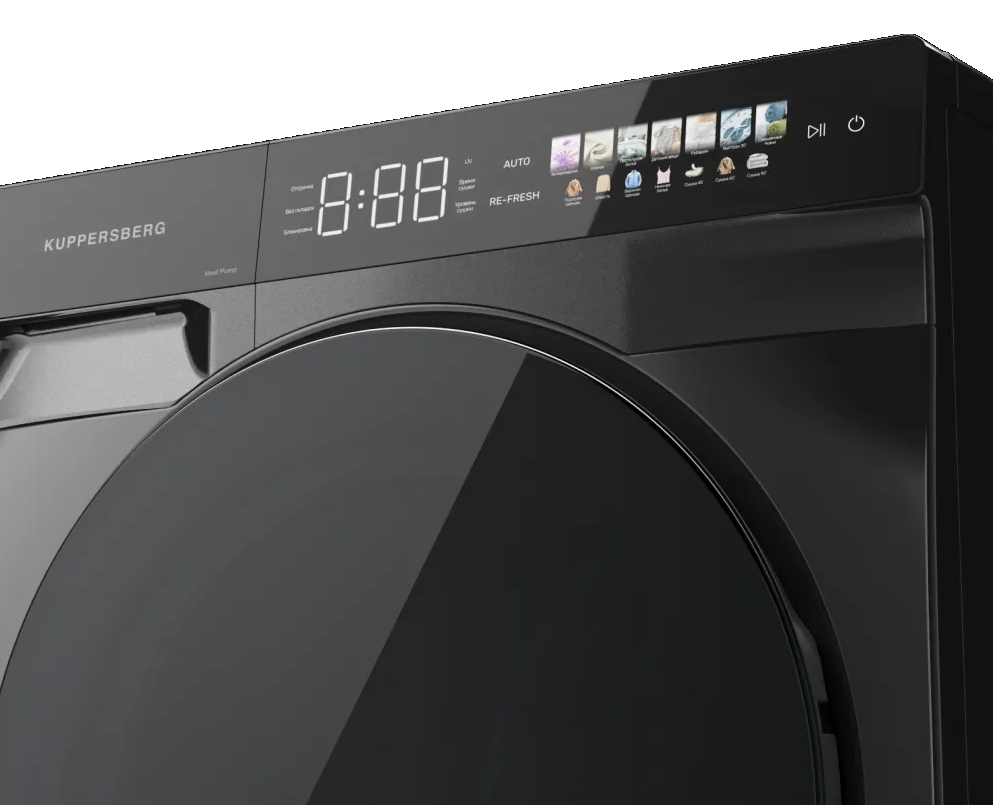 i Механизм нагрева воздуха для сушки белья. Тепловой насос считается более современным, эффективным и экономичным по сравнению с ТЭН.