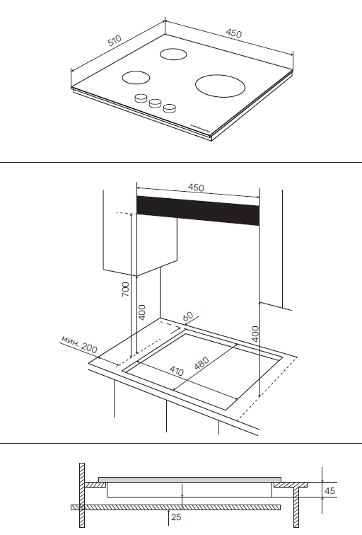 i Модели со встроенной вытяжкой подходят для компактных кухонь. Запахи, пар и дым от готовки полностью поглощаются встроенной вытяжкой.
