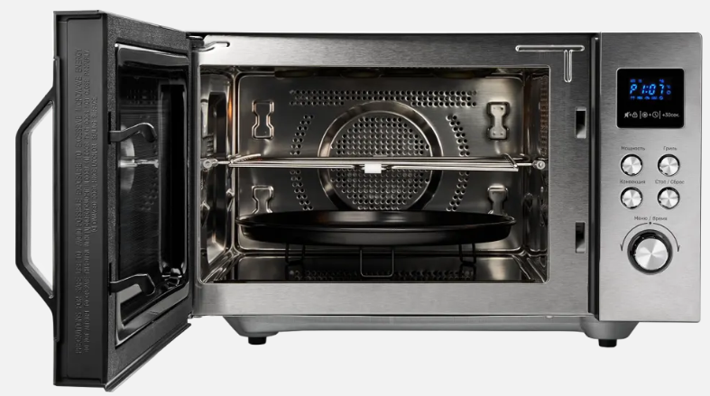 i Поворотный стол — это крутящееся блюдо в центре. Его отсутствие позволяет поместить в камеру посуду большого размера или неправильной формы.