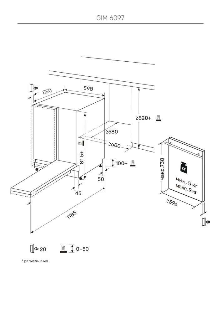 i Ширина корпуса электроприбора. Особенно важно точно знать точную допустимую ширину для встраиваемой техники.