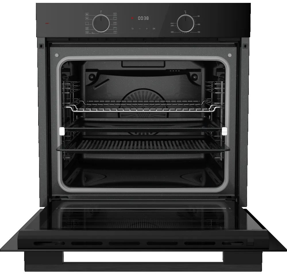 i Предполагает наличие встроенного вентилятора, который обеспечивает равномерное запекание благодаря непрерывной циркуляции горячего воздуха.