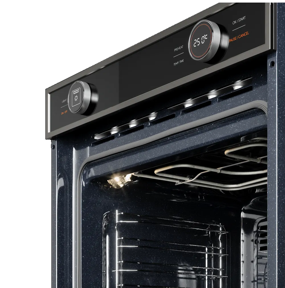 i Предполагает наличие встроенного вентилятора, который обеспечивает равномерное запекание благодаря непрерывной циркуляции горячего воздуха.