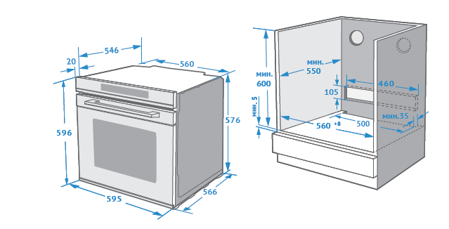 i Ширина корпуса электроприбора. Особенно важно точно знать точную допустимую ширину для встраиваемой техники.
