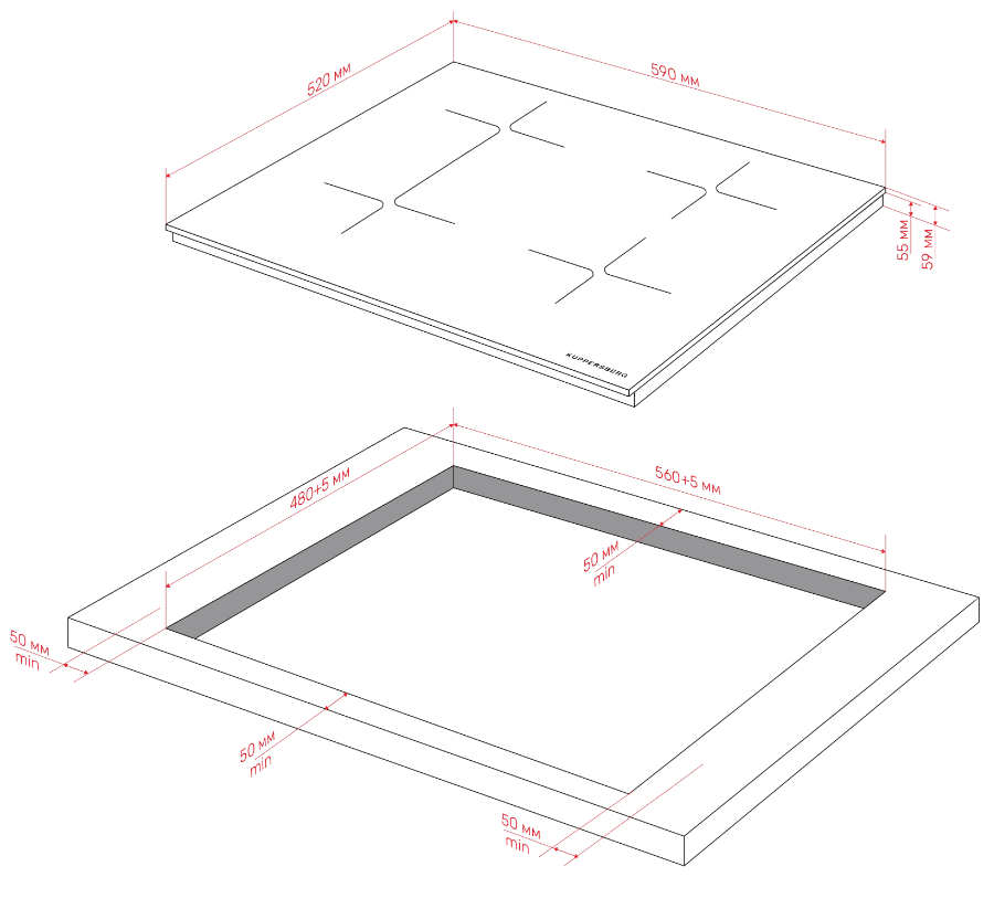 i На варочной поверхности может быть от 2 до 8 электрических конфорок с индукционным нагревом. Для них нужна специальная посуда.
