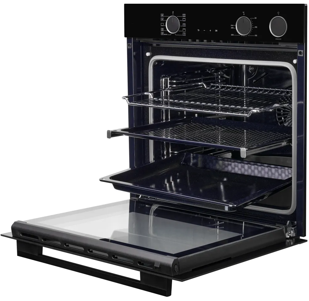 i У духового шкафа может быть газовый или электрический тип питания. Газовые духовки экономичнее, а электрические имеют больше режимов работы.