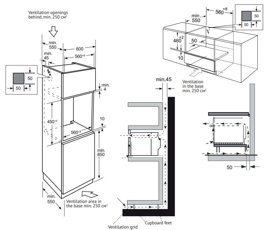 i Высота электроприбора. Подбирайте технику, учитывая стиль помещения, высоту кухонного гарнитура (до 2,5 м) и столешницы (ок. 90 см).