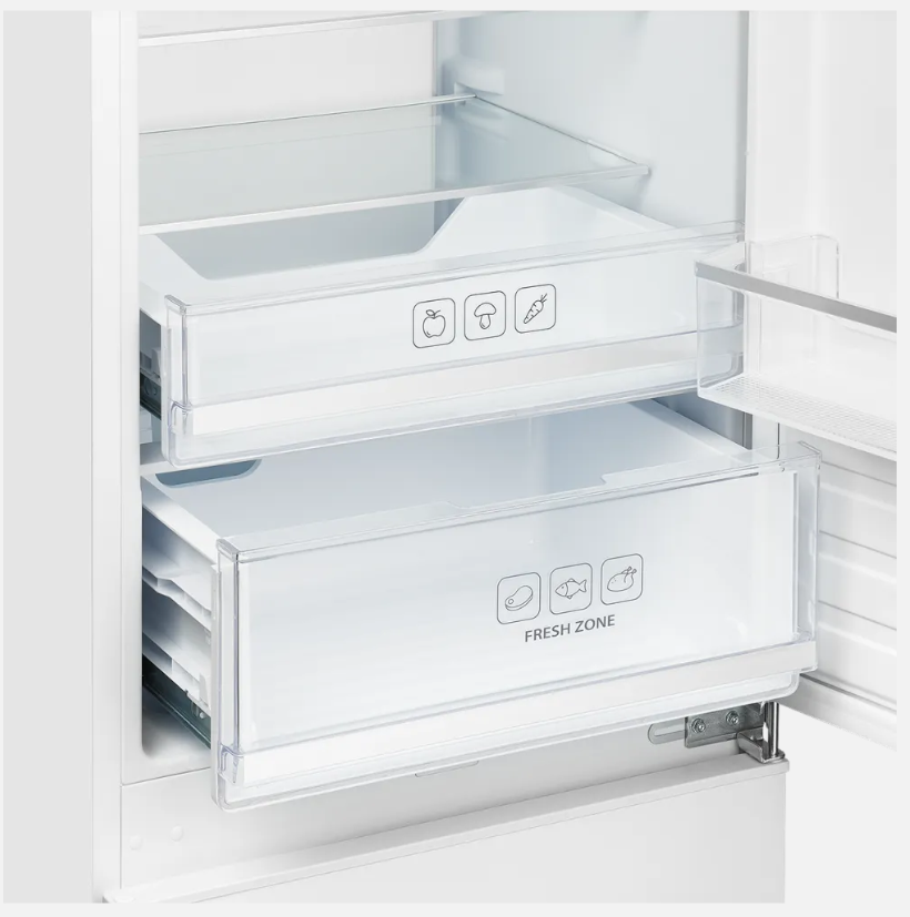 i В зоне свежести температура держится на уровне 0°С, так продукты дольше остаются свежими. Подходит для свежего мяса, рыбы, фруктов, овощей.