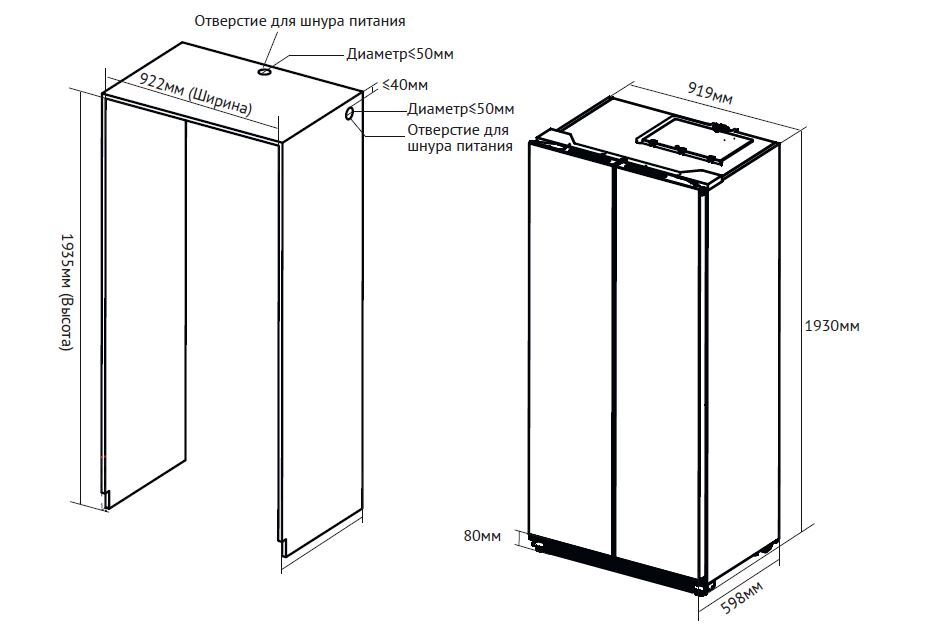 i Ширина корпуса электроприбора. Особенно важно точно знать точную допустимую ширину для встраиваемой техники.