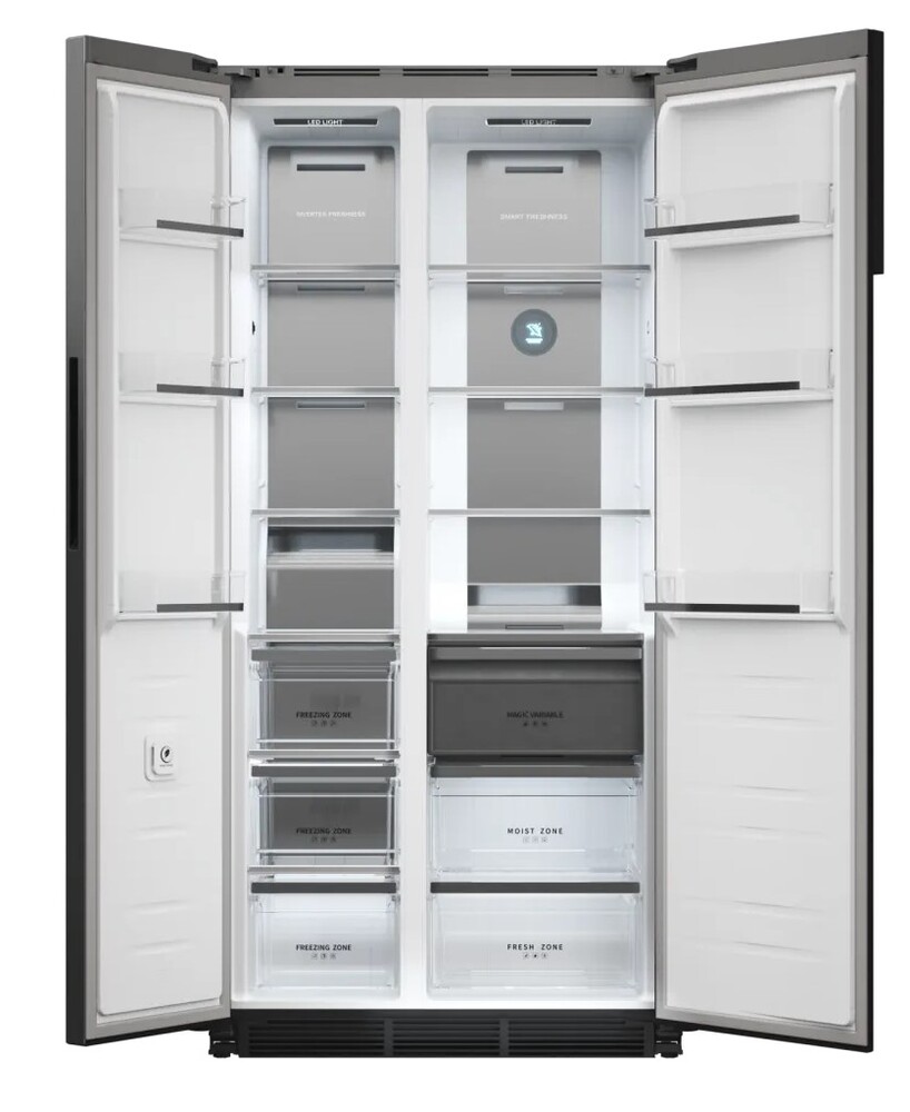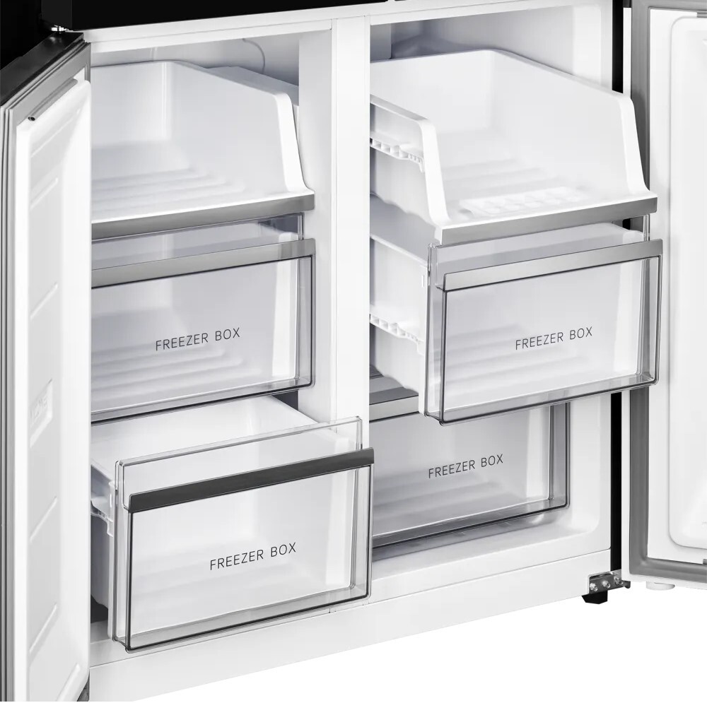 i Морозильная камера может быть расположена сверху, снизу от основной камеры, Side-by-Side. Также она может отсутствовать вовсе.