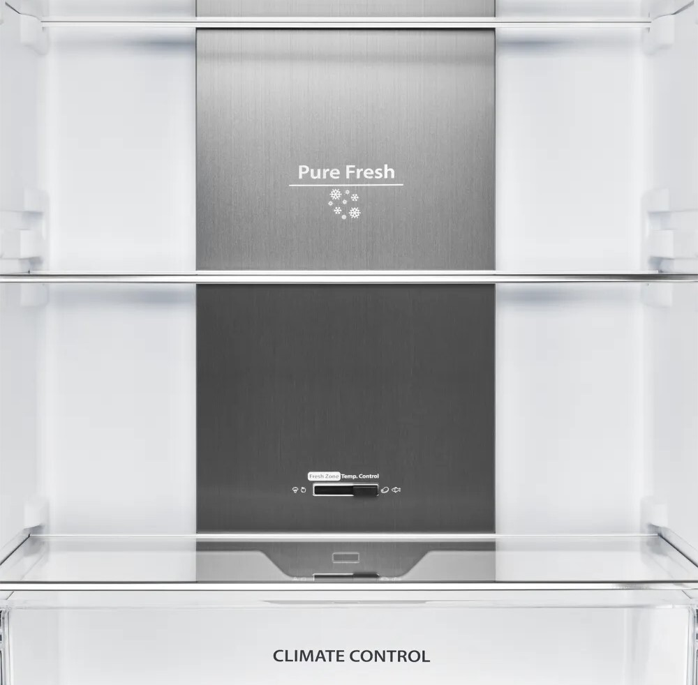 i В зоне свежести температура держится на уровне 0°С, так продукты дольше остаются свежими. Подходит для свежего мяса, рыбы, фруктов, овощей.