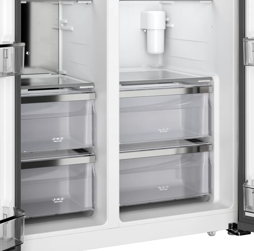 i В зоне свежести температура держится на уровне 0°С, так продукты дольше остаются свежими. Подходит для свежего мяса, рыбы, фруктов, овощей.