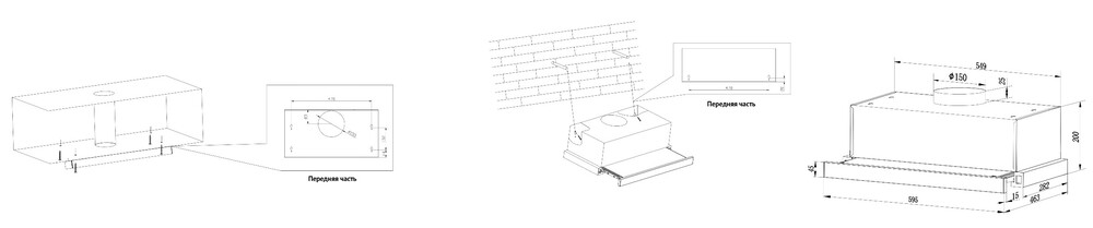 i В зависимости от расположения существует несколько типов установки кухонных вытяжек: встраиваемые, стандартные, пристенные, островные и др.
