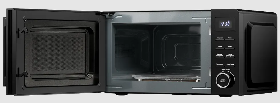 i Поворотный стол — это крутящееся блюдо в центре. Его отсутствие позволяет поместить в камеру посуду большого размера или неправильной формы.