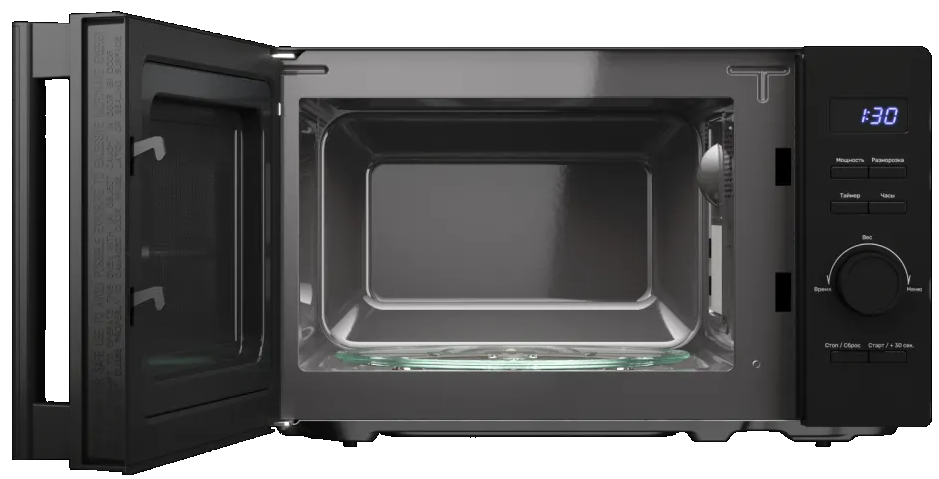 i Поворотный стол — это крутящееся блюдо в центре. Его отсутствие позволяет поместить в камеру посуду большого размера или неправильной формы.