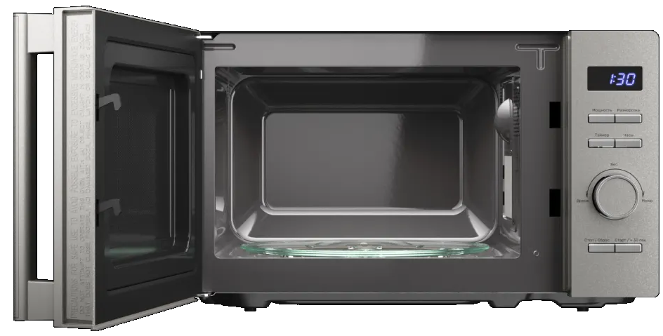 i Поворотный стол — это крутящееся блюдо в центре. Его отсутствие позволяет поместить в камеру посуду большого размера или неправильной формы.