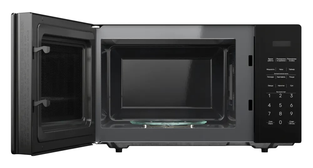 i Поворотный стол — это крутящееся блюдо в центре. Его отсутствие позволяет поместить в камеру посуду большого размера или неправильной формы.