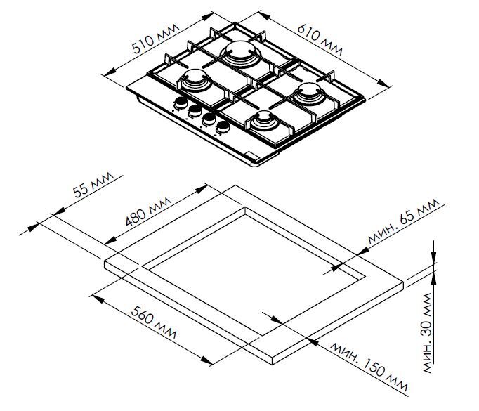 i Приборы могут имеют разное количество газовых, электрических и индукционных конфорок. Выбирайте оптимальный вариант для комфортной готовки.