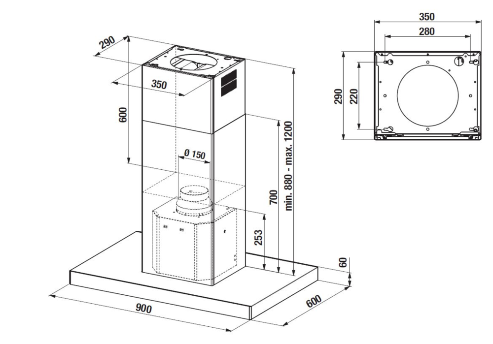Мин. расположение над электрической варочной панелью, мм