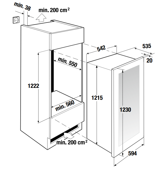 i Вместимость или емкость винного шкафа определяется количеством установленных в нем ячеек для бутылок со стандартным объемом 0,75 л.