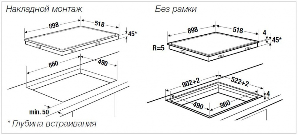 i Характер огранки фаски на внешней стороне варочной панели. Металлические рамки предотвращают забивание монтажных швов крошками и пылью.