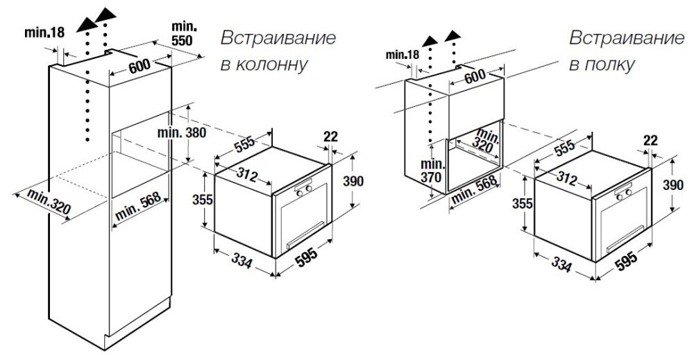 Размеры ниши для встраивания,мм