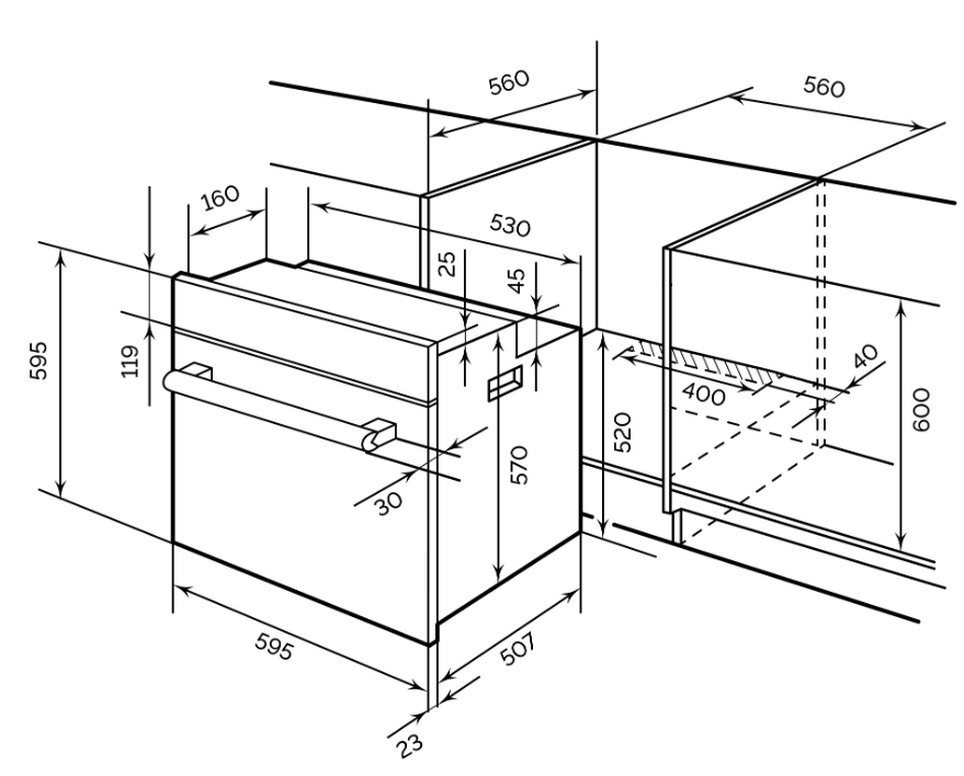 i Ширина корпуса электроприбора. Особенно важно точно знать точную допустимую ширину для встраиваемой техники.