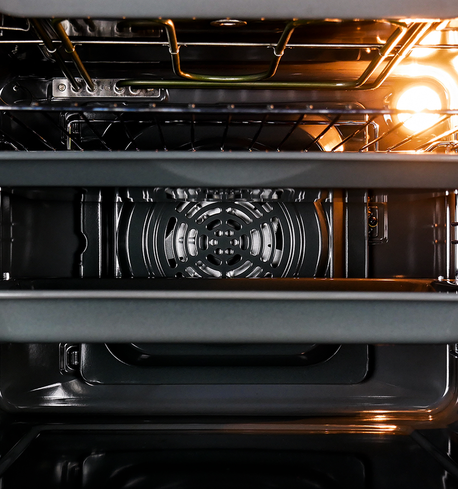 i Предполагает наличие встроенного вентилятора, который обеспечивает равномерное запекание благодаря непрерывной циркуляции горячего воздуха.
