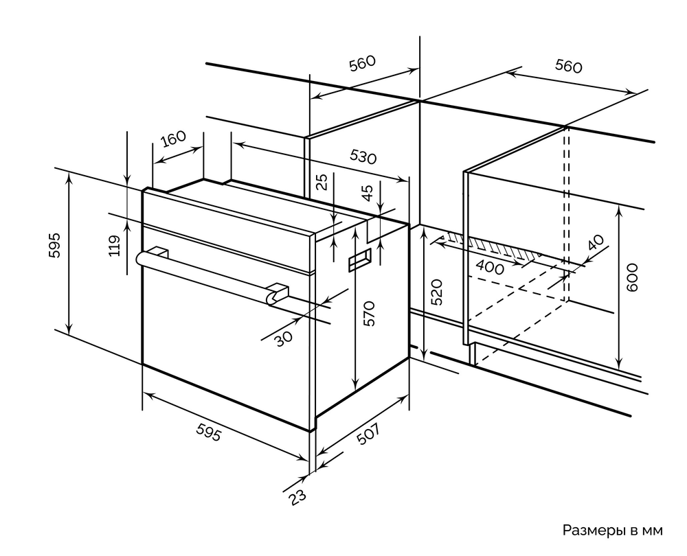 i Ширина корпуса электроприбора. Особенно важно точно знать точную допустимую ширину для встраиваемой техники.