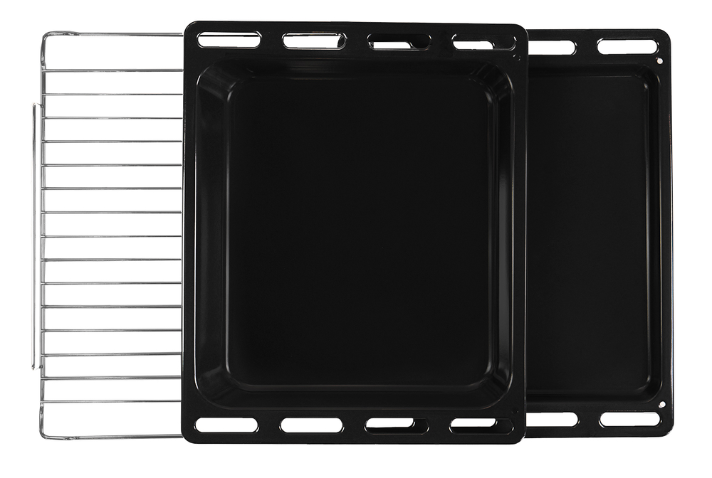 1 пара телескопических направляющих, 1 решетка и 2 противня |