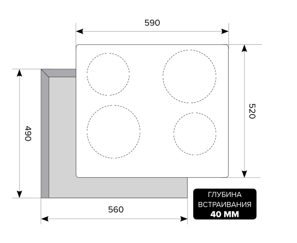 i Расположение панели управления варочной поверхностью относительно конфорок. Если панель расположена сбоку, она будет справа.