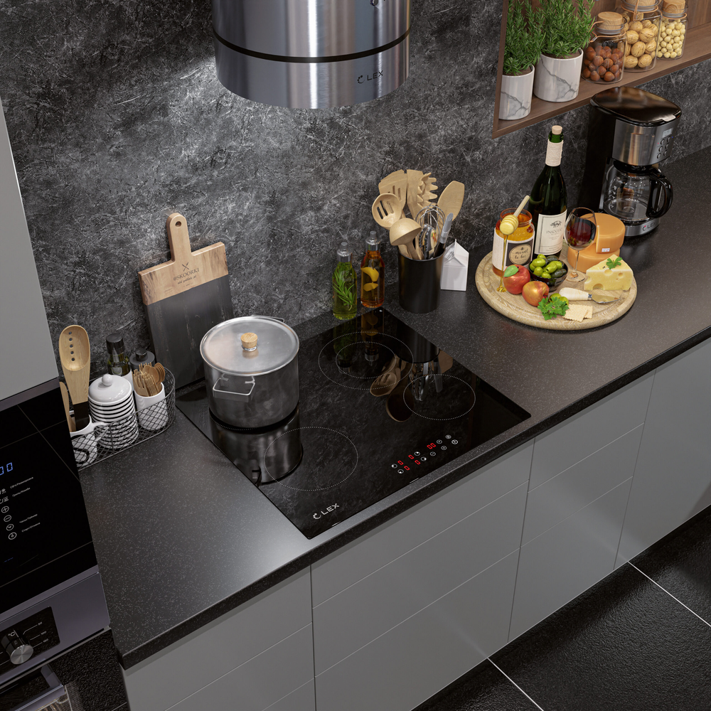 i Модели со встроенной вытяжкой подходят для компактных кухонь. Запахи, пар и дым от готовки полностью поглощаются встроенной вытяжкой.